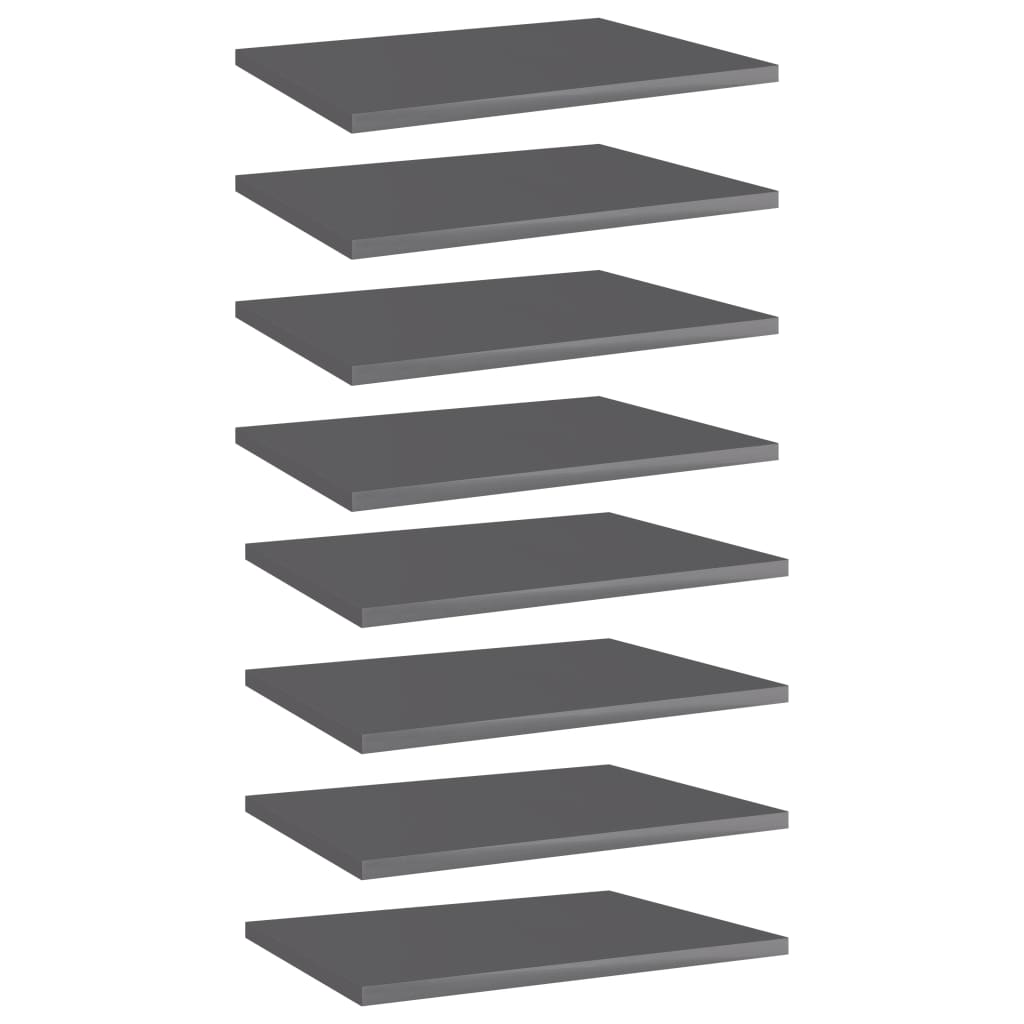 Bookshelf Boards 8 pcs High Gloss Gray 15.7"x11.8"x0.6" Engineered Wood