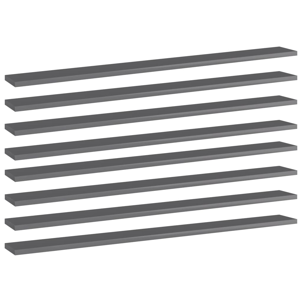 Bookshelf Boards 8 pcs High Gloss Gray 39.4"x3.9"x0.6" Engineered Wood