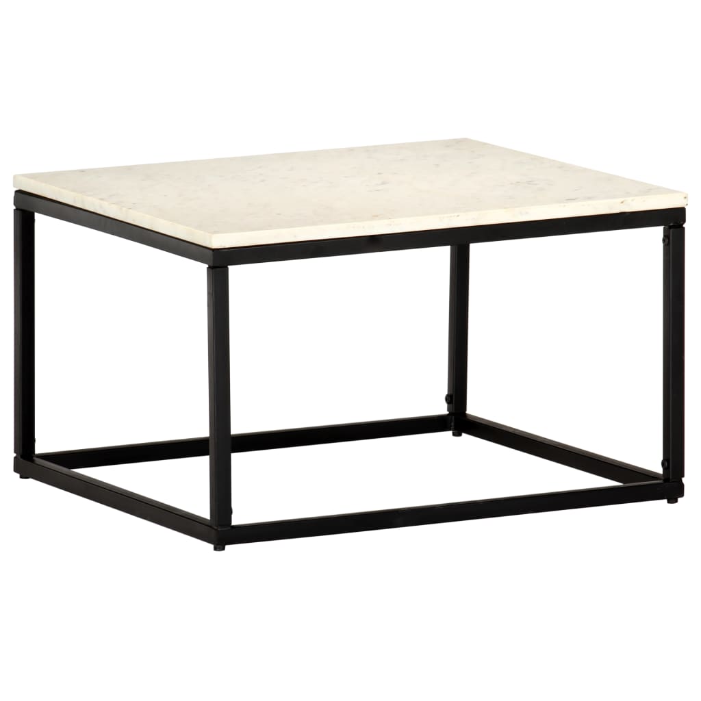 Coffee Table White 23.6"x23.6"x13.8" Real Stone with Marble Texture