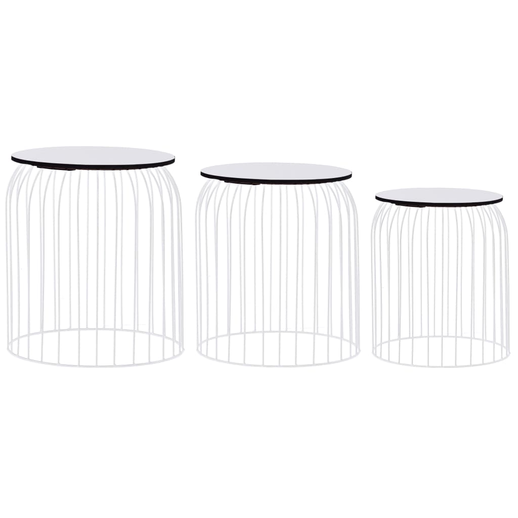 This set of three nesting coffee tables has a stylish industrial vibe that perfectly combines function and modern looks, making it a good fit for any trendy living room or conservatory. With their round shape and smooth white finish, these tables are not just practical for drinks and decoration but also save space with their stackable design, keeping your home looking nice and tidy.