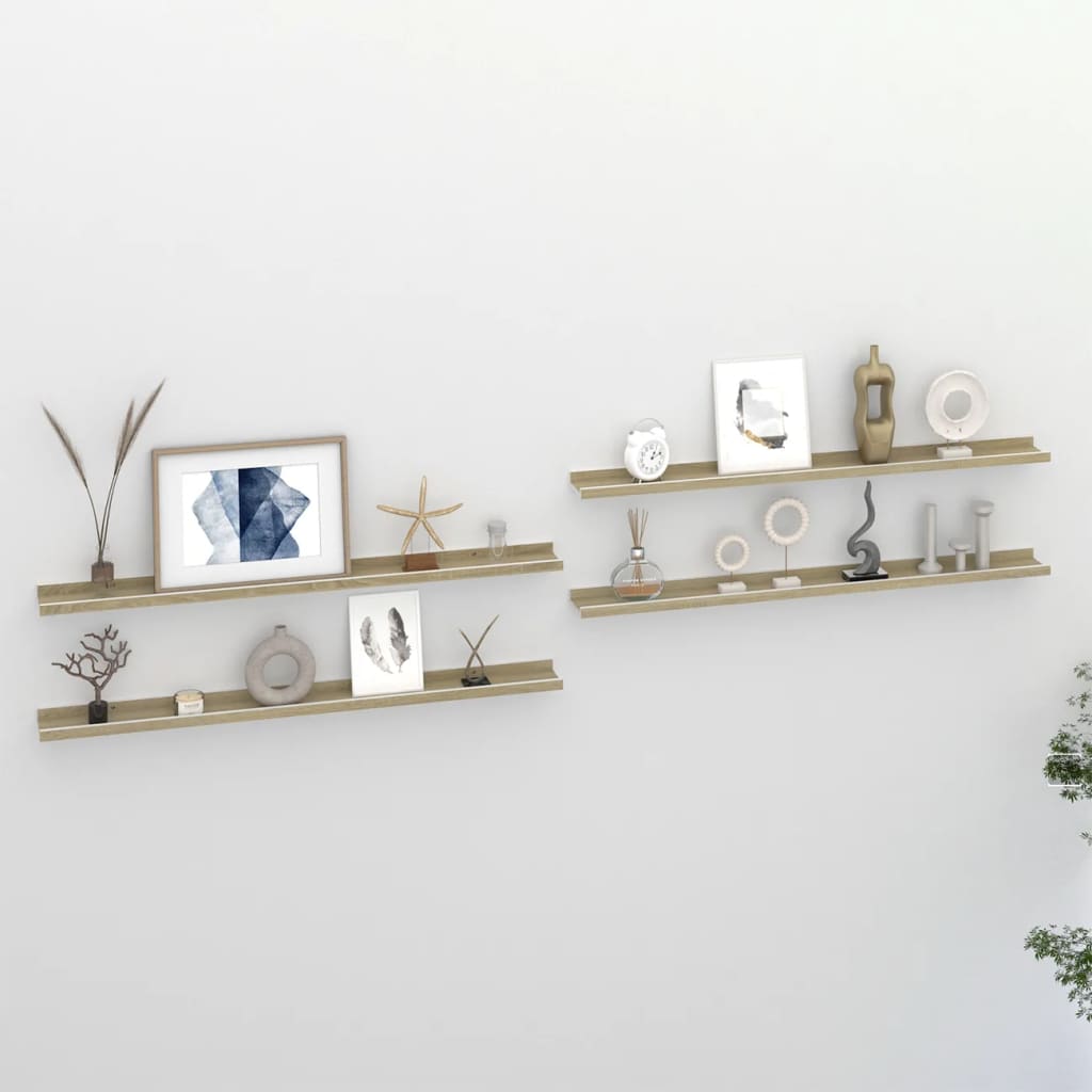 Wall Shelves 4 pcs White and Sonoma Oak 39.4"x3.5"x1.2"